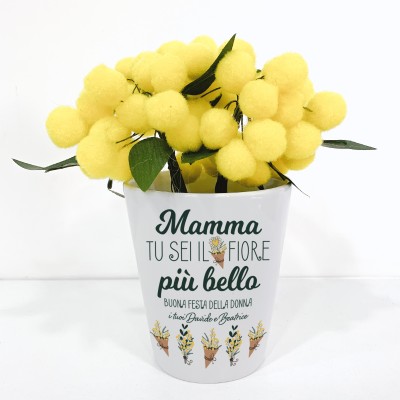 Vasetto Ceramica Personalizzato con Mimosa artificiale