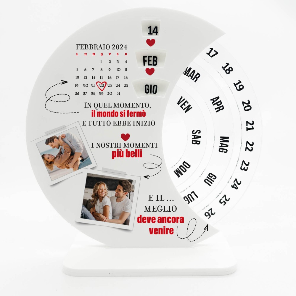 Crea un regalo unico e speciale con il nostro calendario perpetuo personalizzato! Personalizzabile con le tue foto preferite e la data di fidanzamento, è un perfetto ricordo per celebrare momenti speciali.